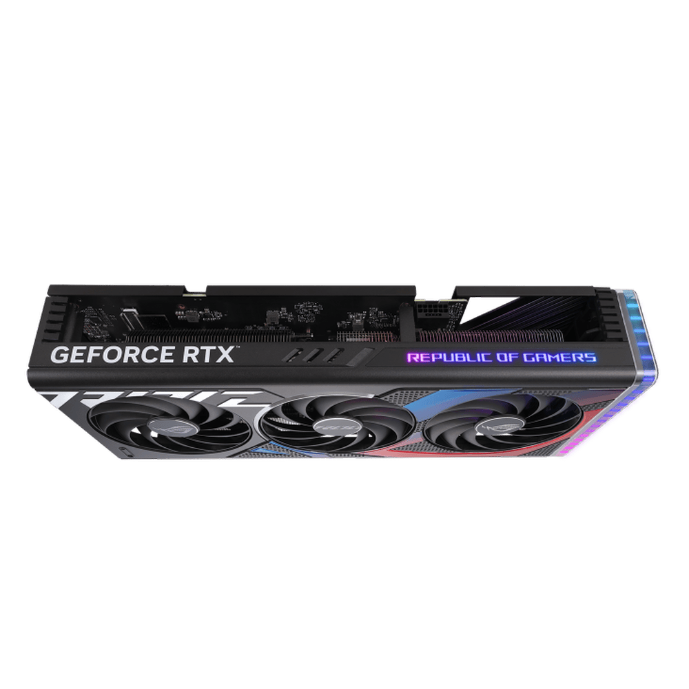 The ROG Strix cooling design uses large heatsinks, high-performance fans, and optimized airflow to maintain safe operating temperatures.
