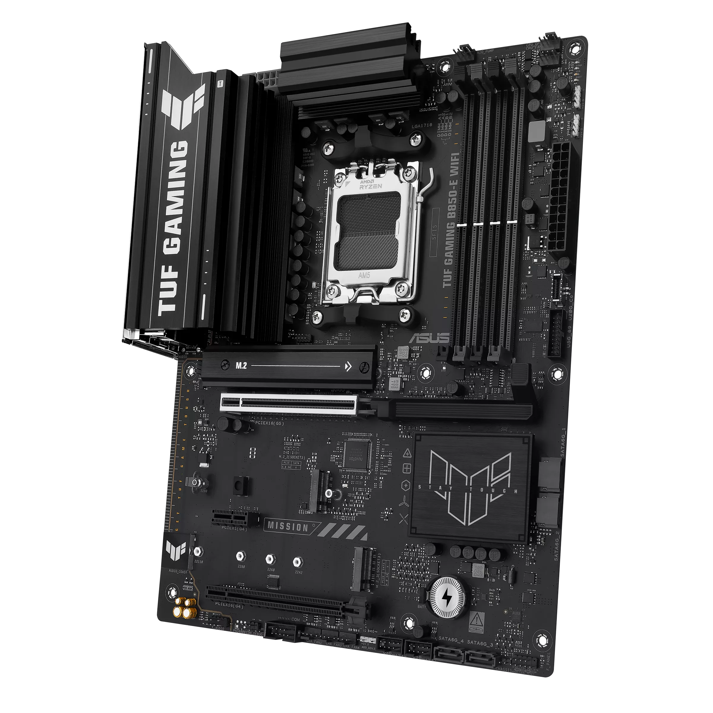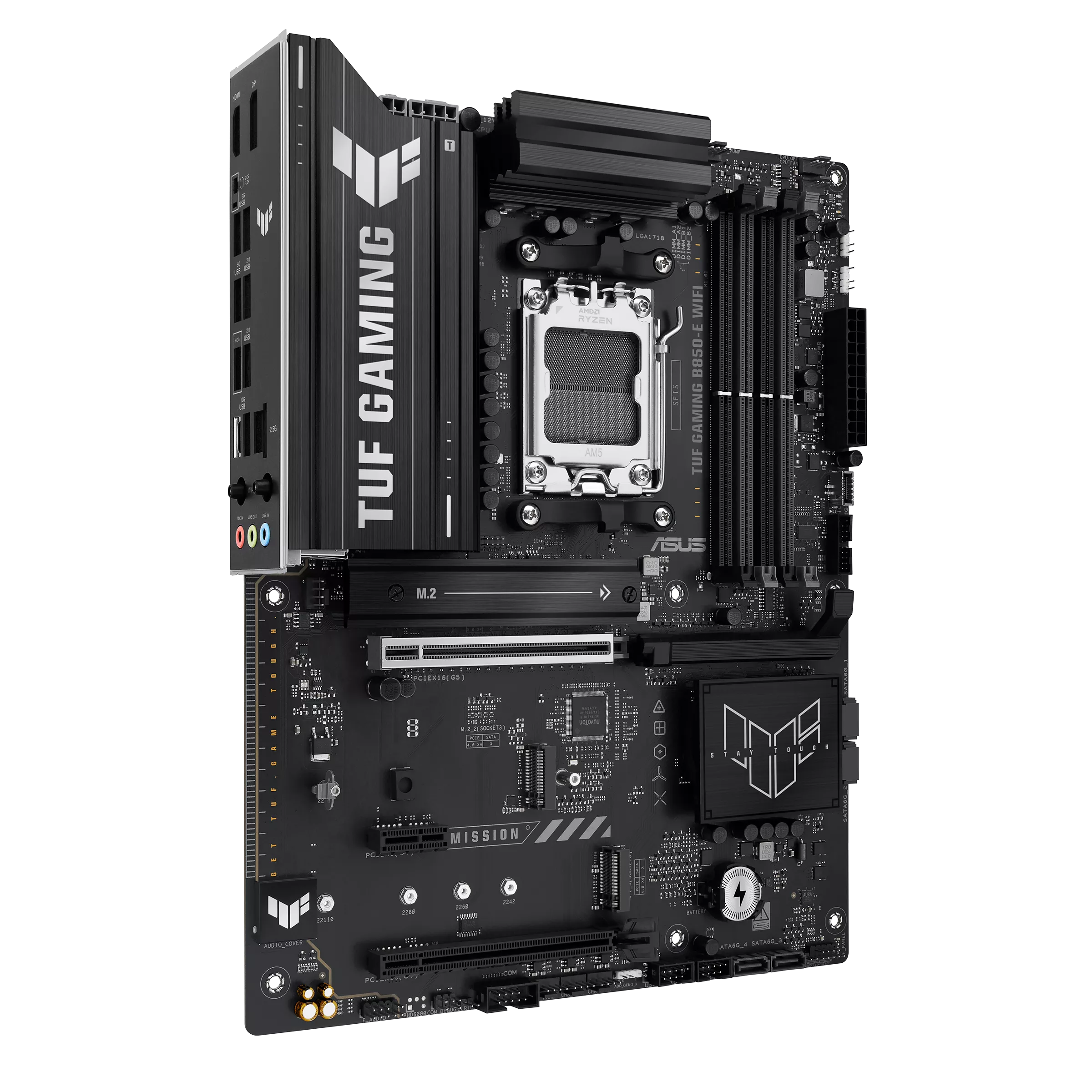 ASUS TUF GAMING B850-E WIFI takes all the essential elements of the latest AMD Ryzen™ processors and combines them with game-ready features and proven durability.
