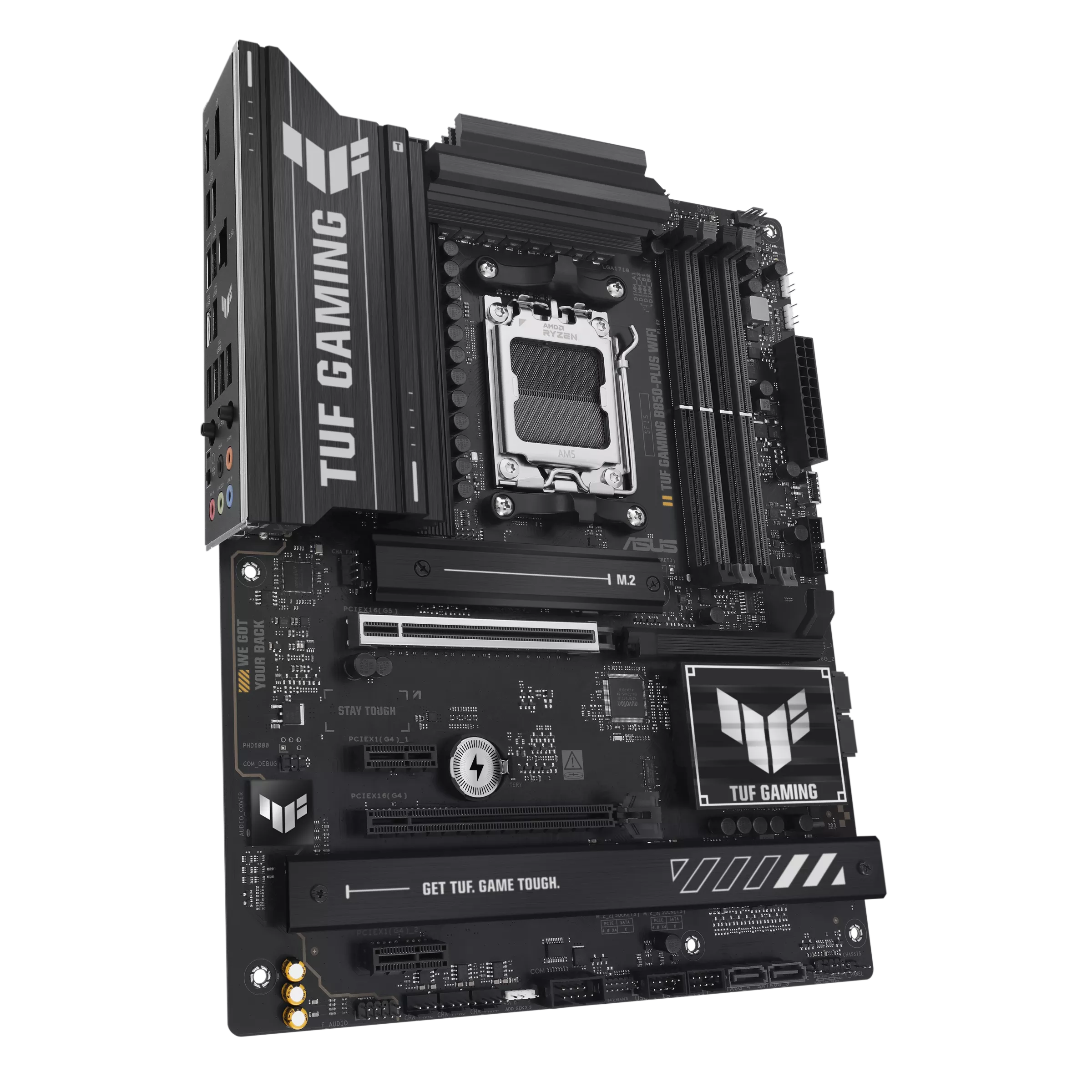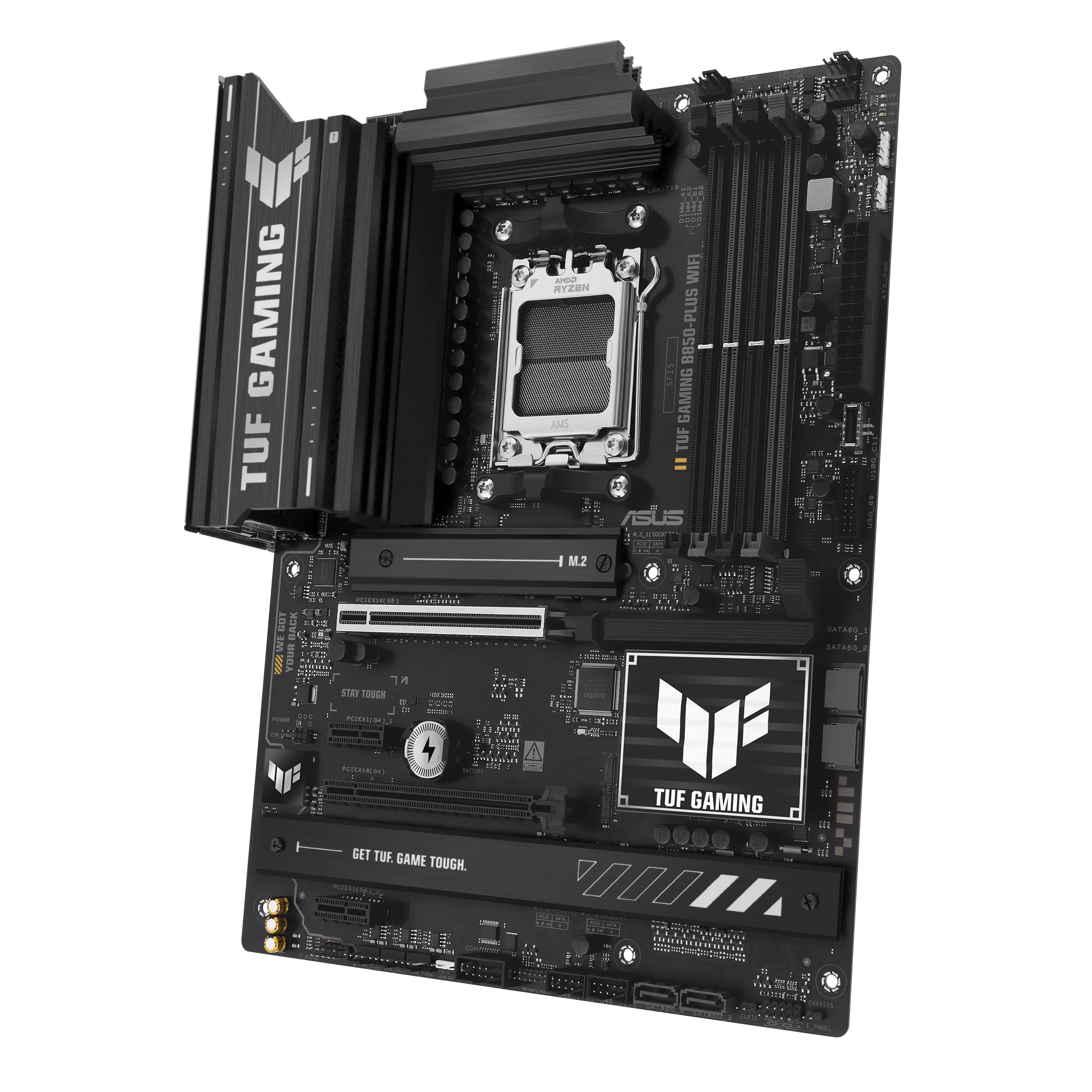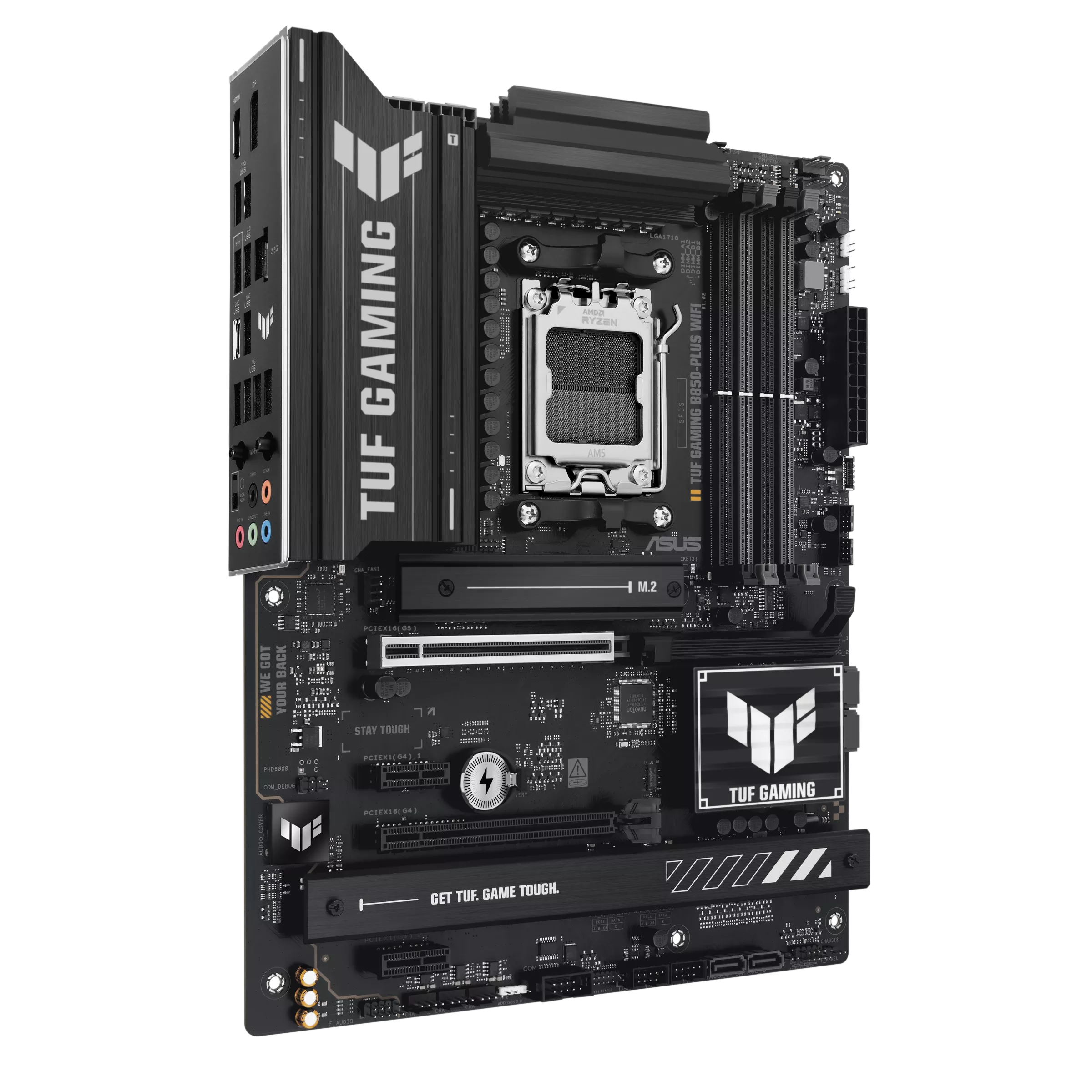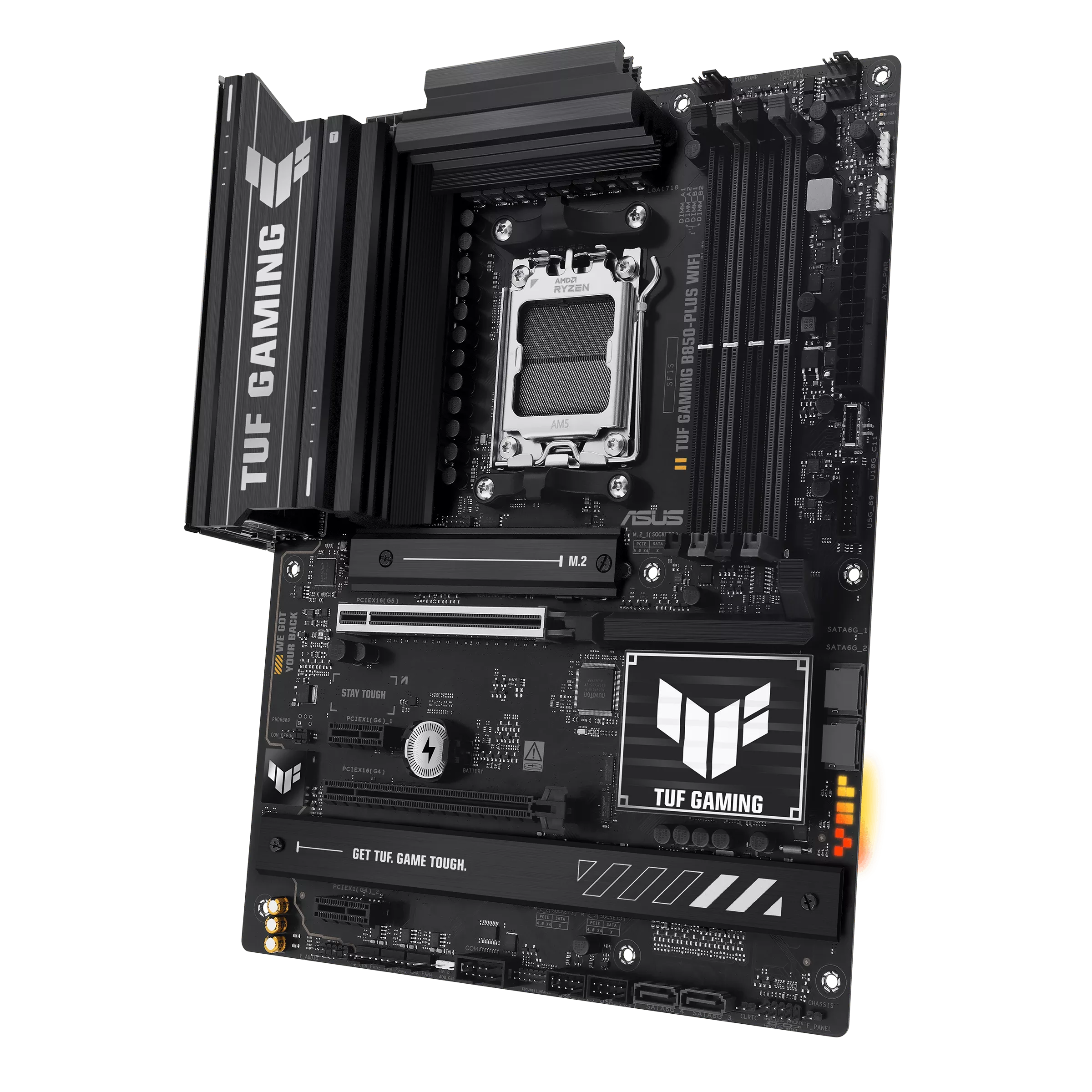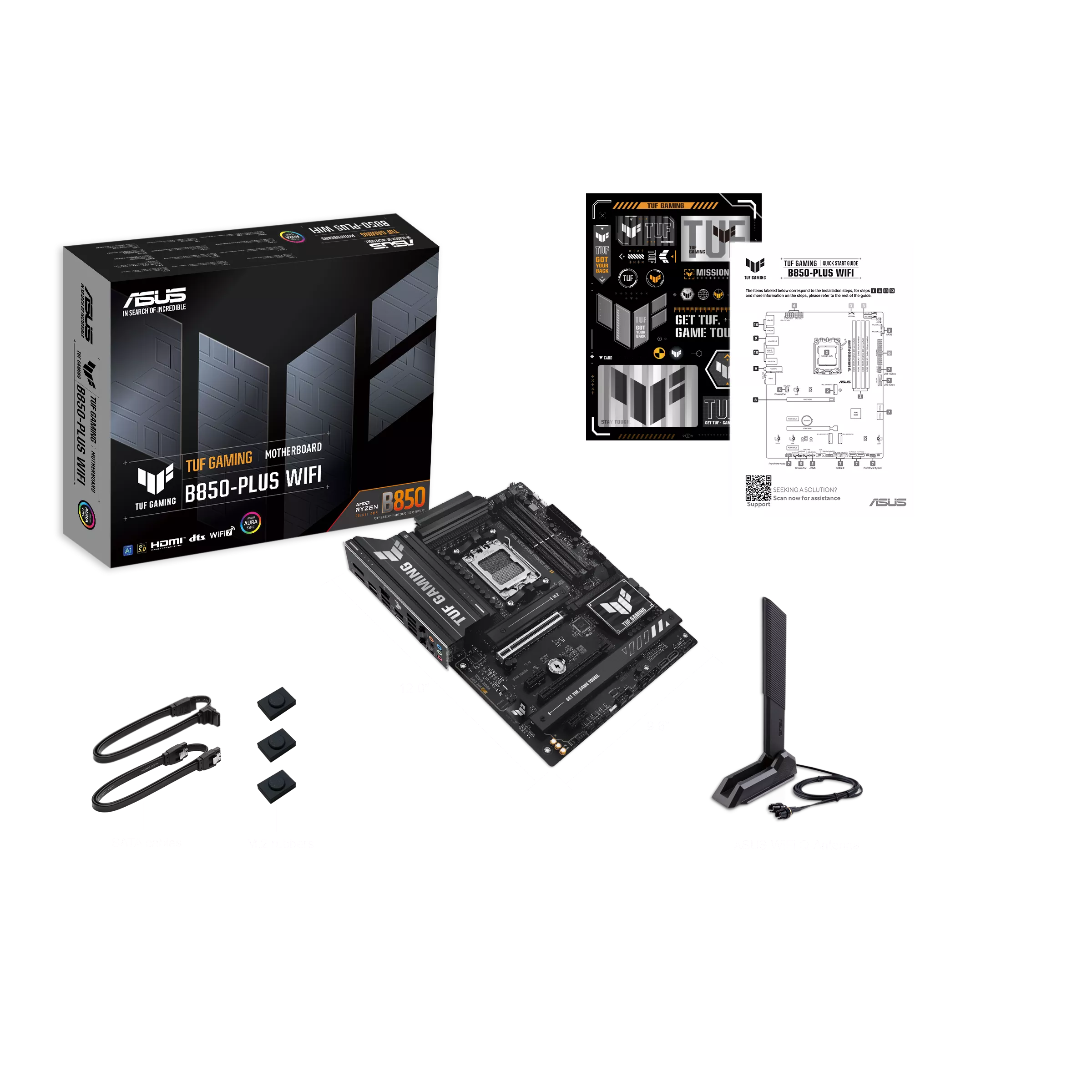 ASUS TUF GAMING B850-PLUS WIFI takes all the essential elements of the latest AMD Ryzen™ processors and combines them with game-ready features and proven durability.