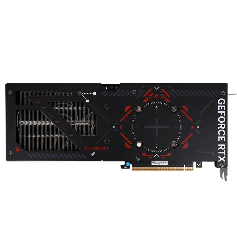 Colorful doesn’t just focus on performance—the Battle AX 8GB‑V also makes a statement visually. With its red and black color contrast design, the graphics card adds a bold, aggressive flair to your setup. The metallic, hollowed backboard not only enhances airflow but also reinforces the card’s structural integrity.