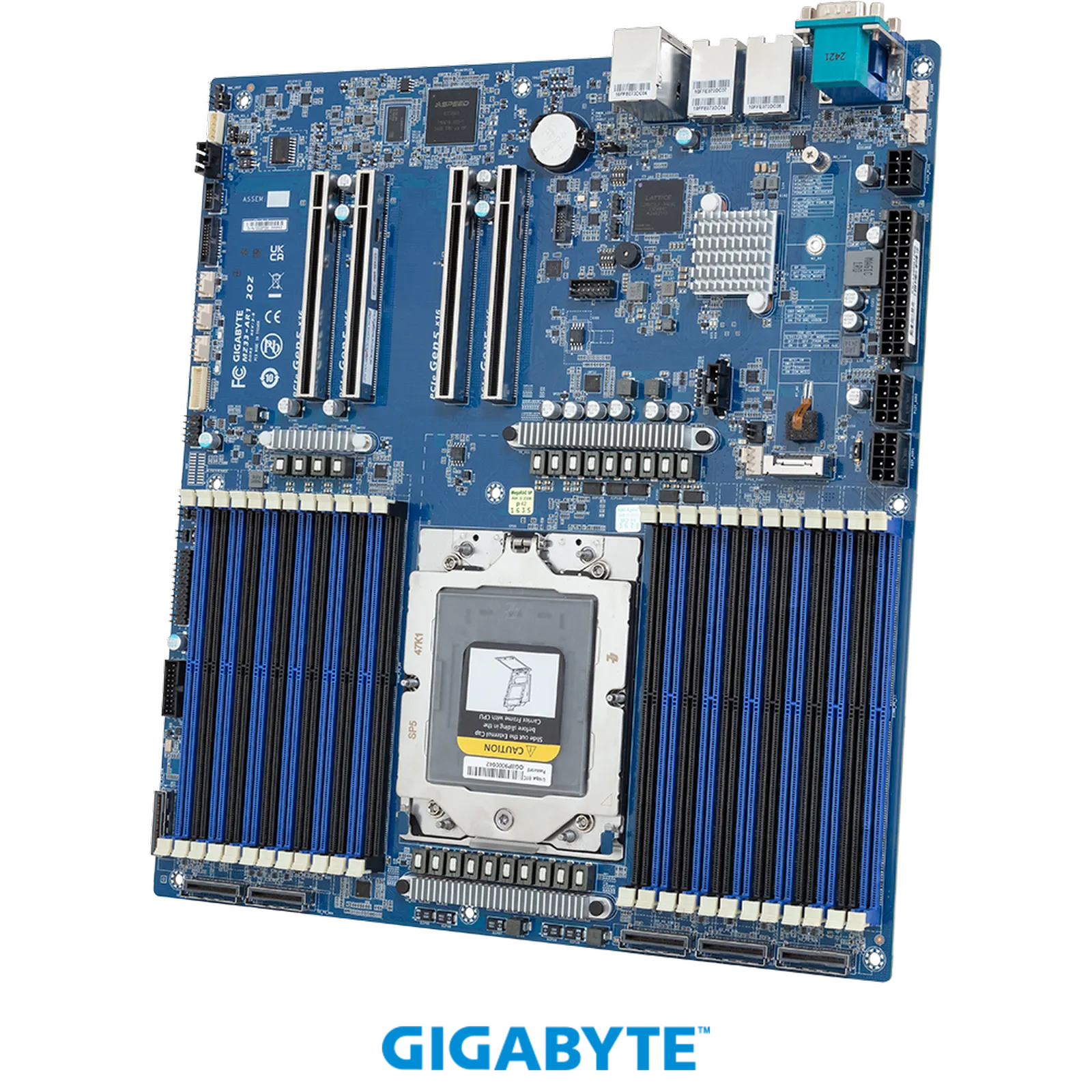 To support modern accelerators and storage devices, the MZ33-AR1 includes four PCIe Gen5 x16 expansion slots, delivering ultra-high bandwidth connectivity.