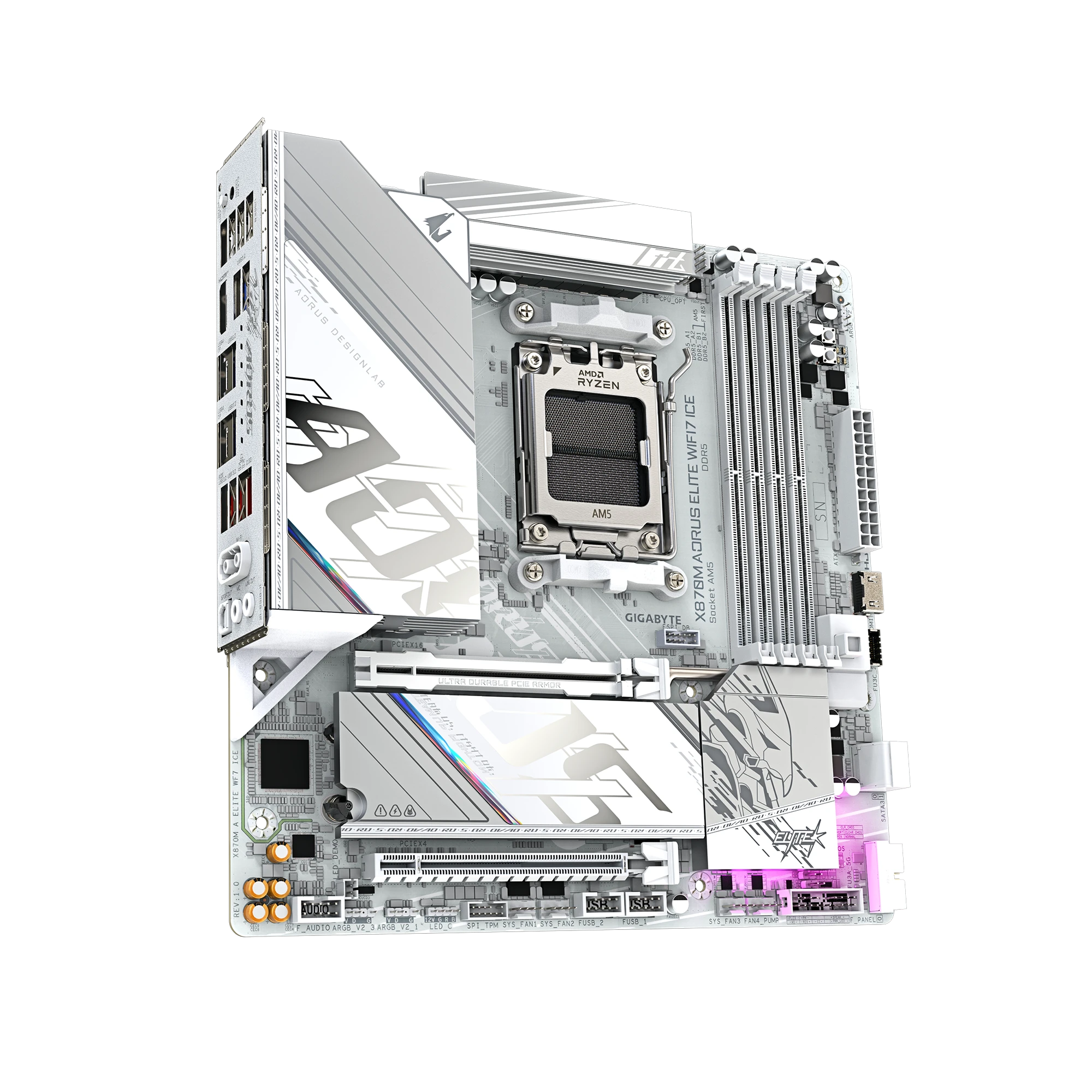 A defining feature of the X870M AORUS ELITE WIFI7 ICE is its beautiful white ICE design.