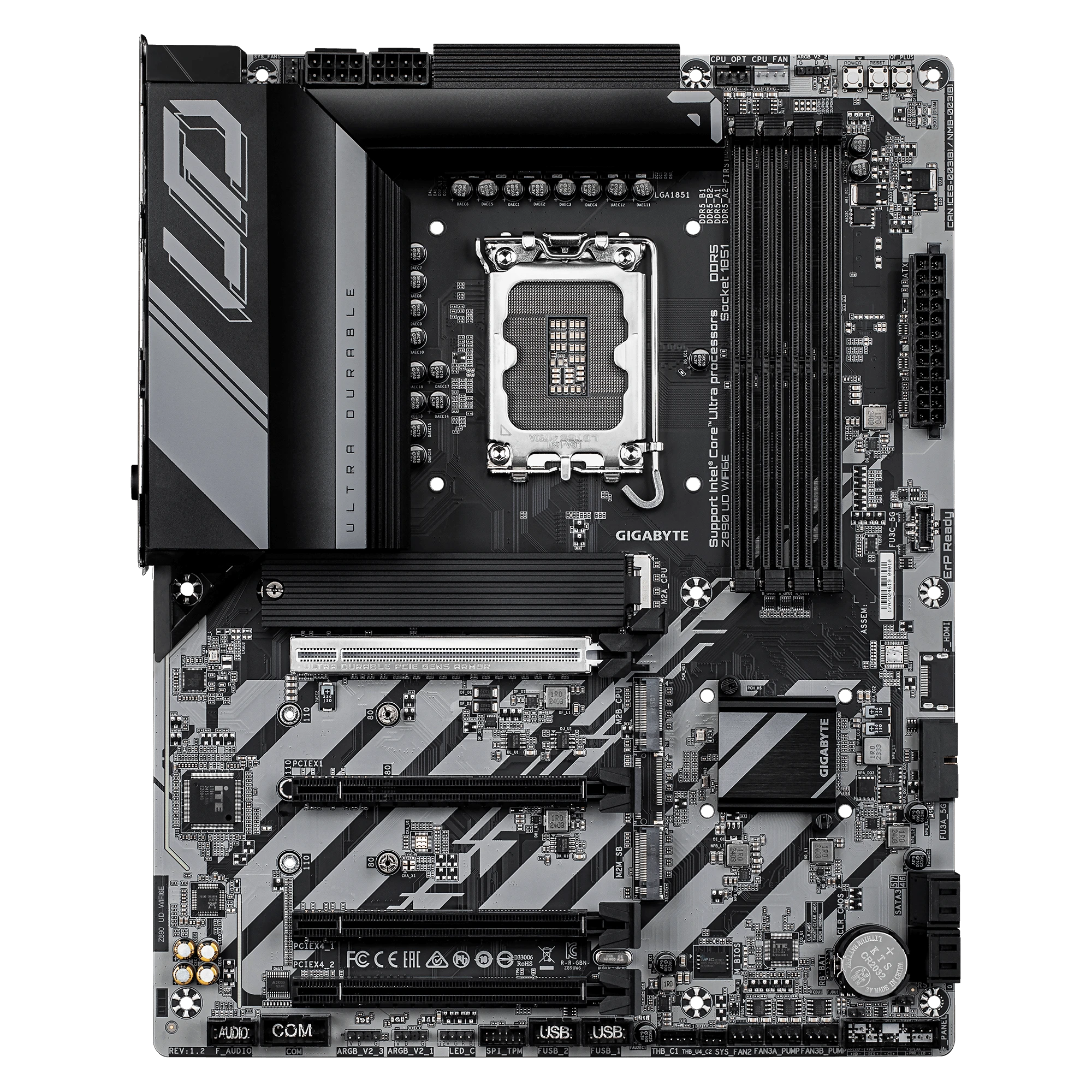 The Z890 UD WIFI6E includes a PCIe 5.0 x16 slot, supporting the latest GPUs and high-bandwidth devices.