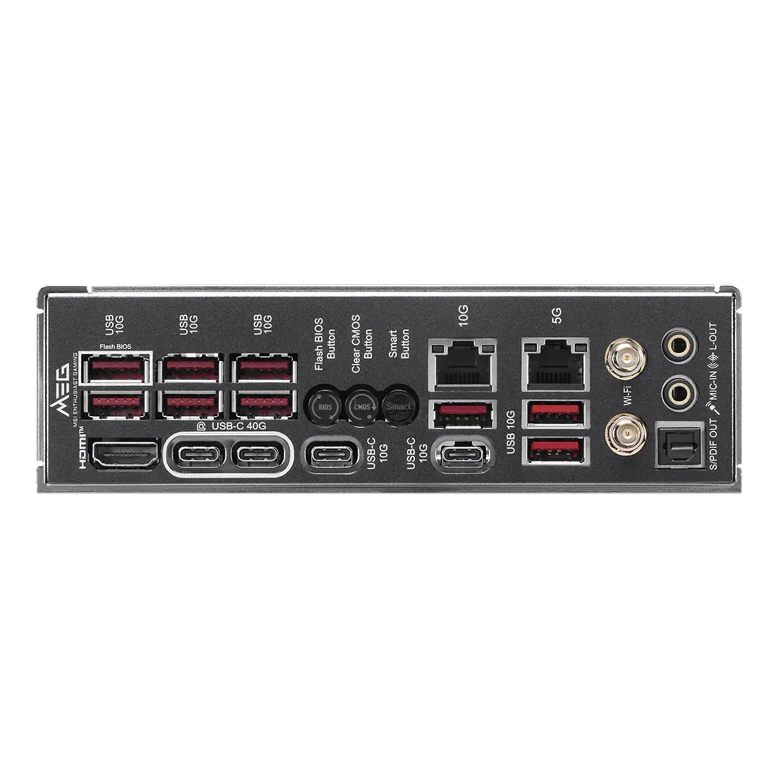 Connectivity is one of the strongest aspects of the MEG X870E ACE MAX. It features dual LAN ports, including 10G LAN and 5G LAN, providing ultra-fast wired networking for professional workloads and gaming.