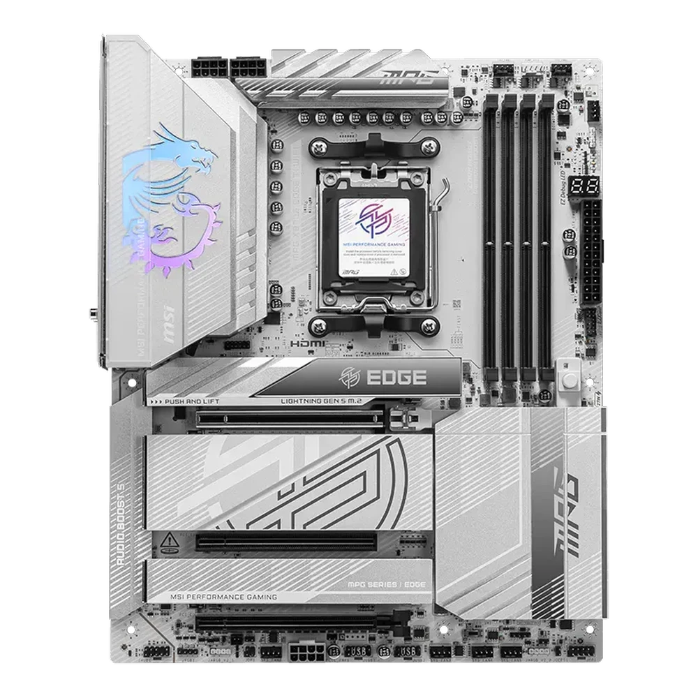 The MSI MPG X870E EDGE TI WIFI is a flagship-class motherboard engineered for enthusiasts who demand uncompromising performance, premium features, and elegant design. Built on the AMD X870E chipset and AM5 socket, it supports AMD Ryzen 9000, 8000, and 7000 series processors, making it an ideal foundation for next-generation gaming PCs and high-performance workstations.